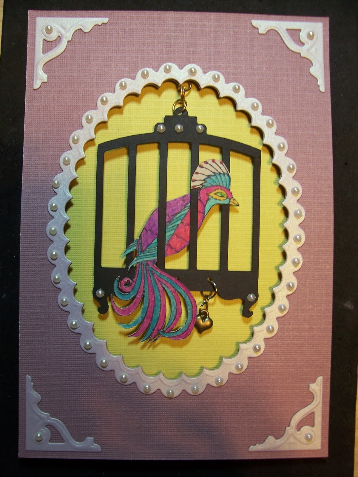 First of all let me explain the accident prone part. I slipped and fell in the shower yesterday. I landed with my ribs on the side of the tub. The bruise is amaizingly small. Thankfully, I was finished with my shower and so I just sat there and turned off the water until I could get up. I don't think I broke anything but I will go to the dr. tomorrow to get it checked out. BTW, no the shower curtain won't break your fall especially if it's on a tension rod. LOL Ok not realy funny. It only hurts when I breath, bend, cough ect. But I digress, I have more card samples to show you from After Midnight Art Stamps.